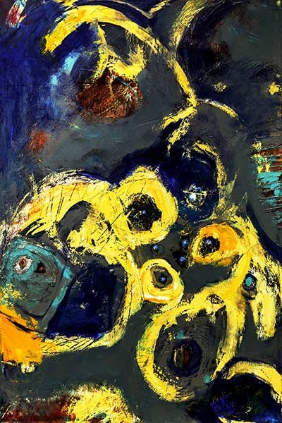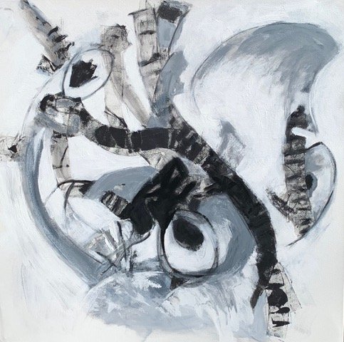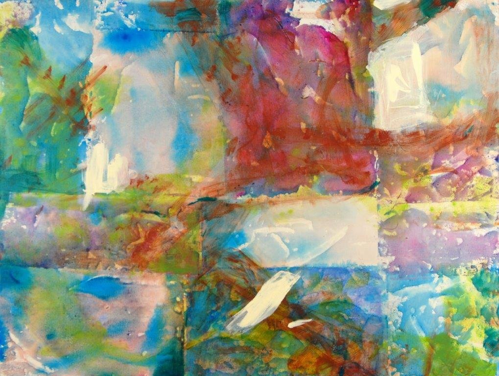 Acrylic paintings, occasionally with collage or texture.