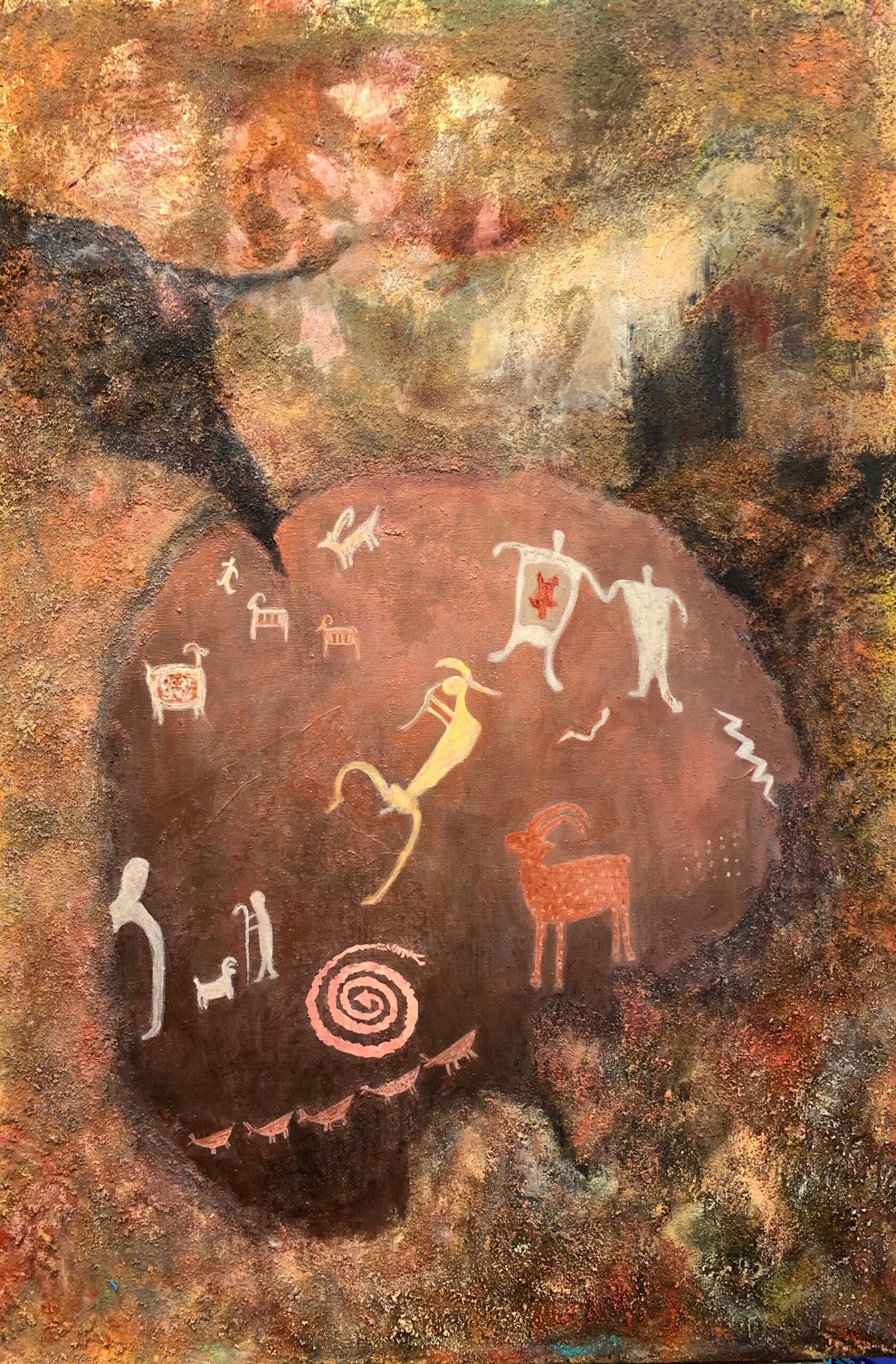 Representational abstract paintings. Acrylic, occasionally with collage or texture.