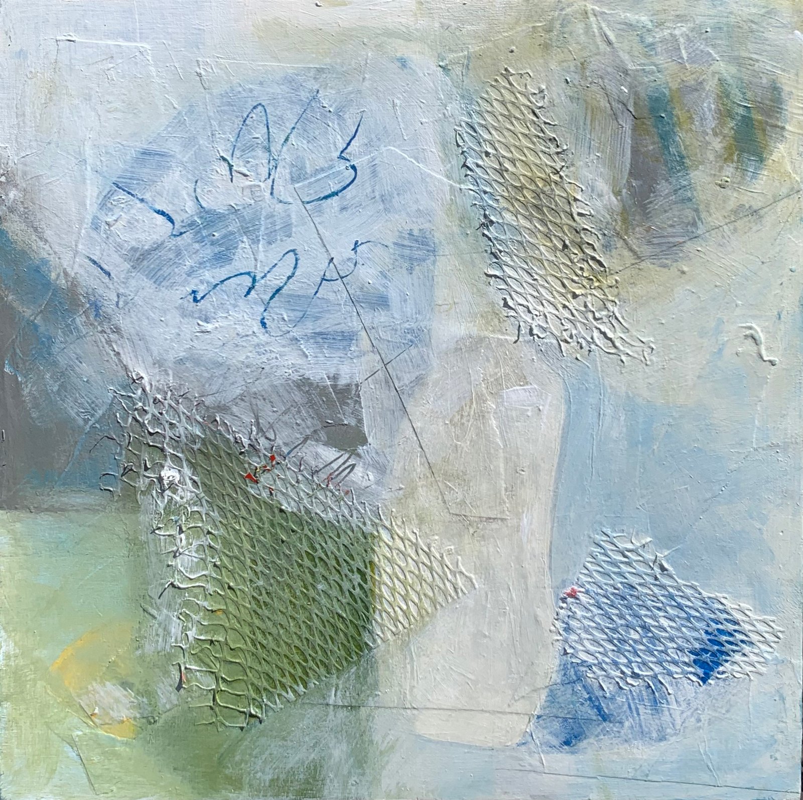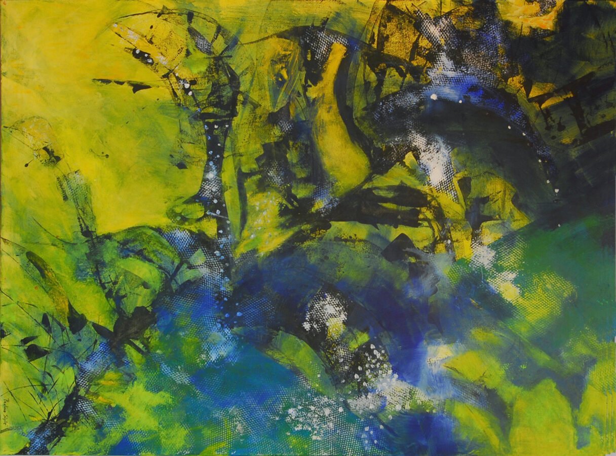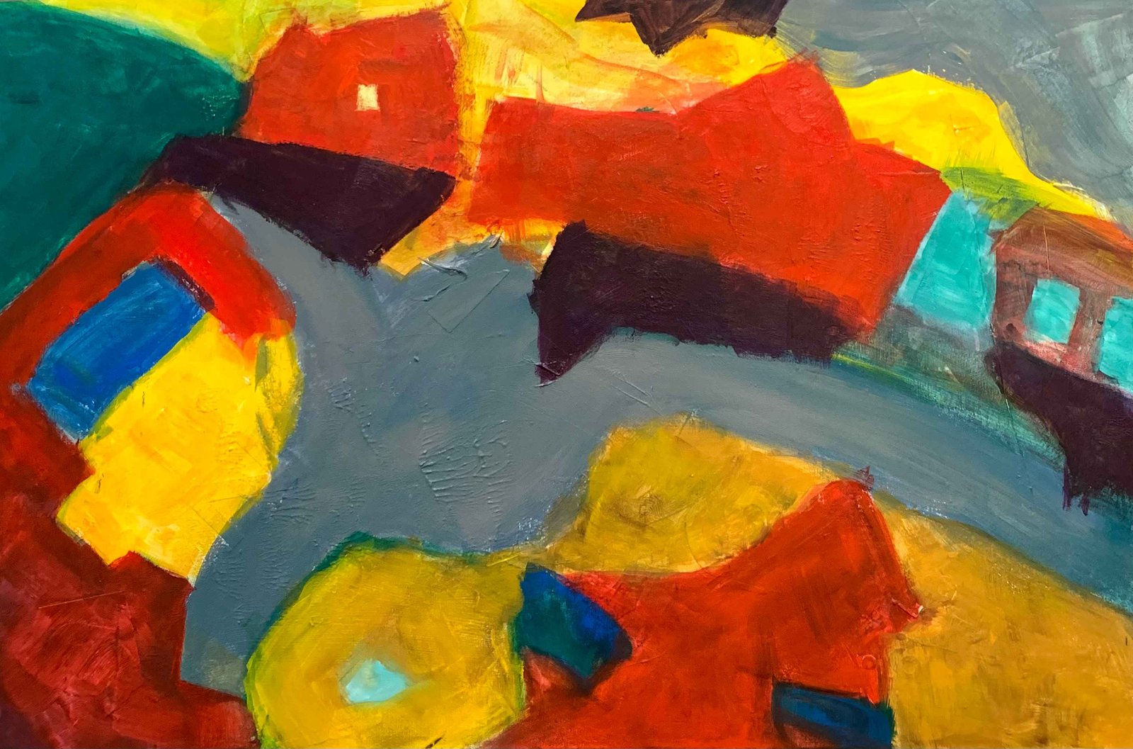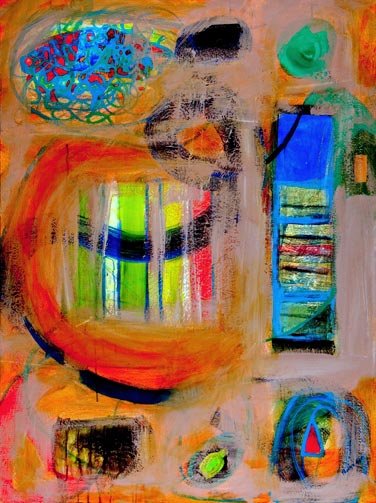 Acrylic paintings, occasionally with collage or texture.