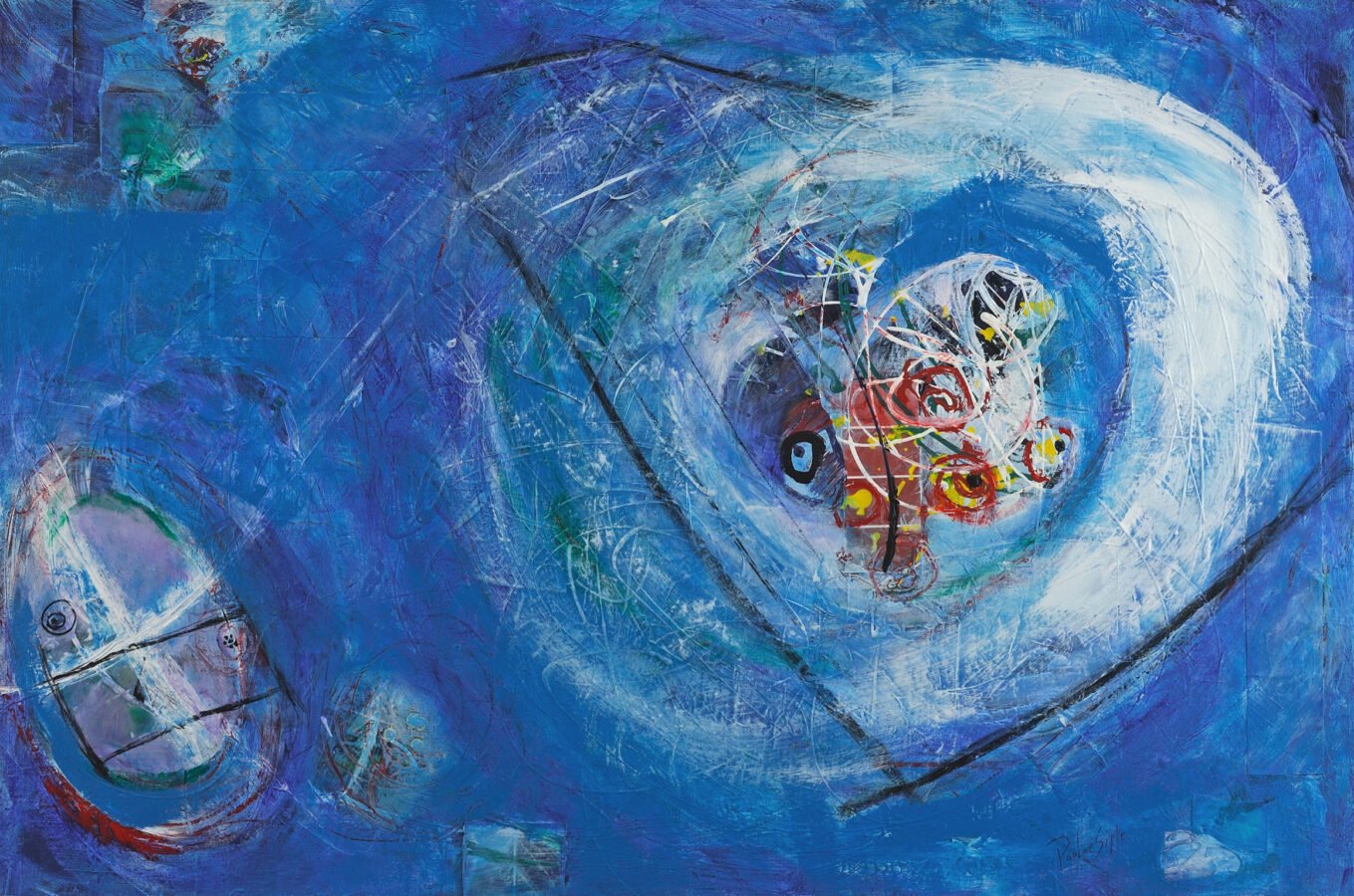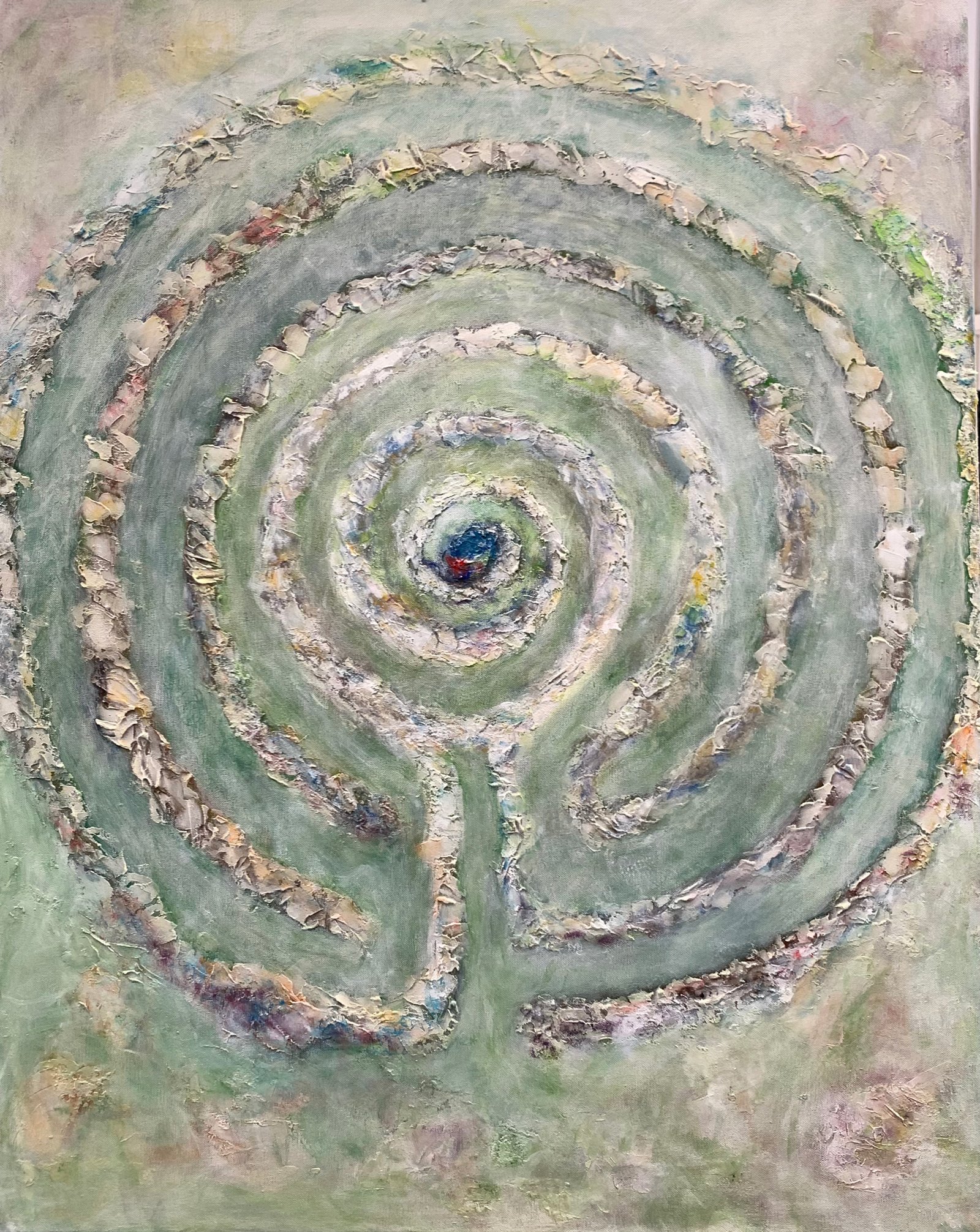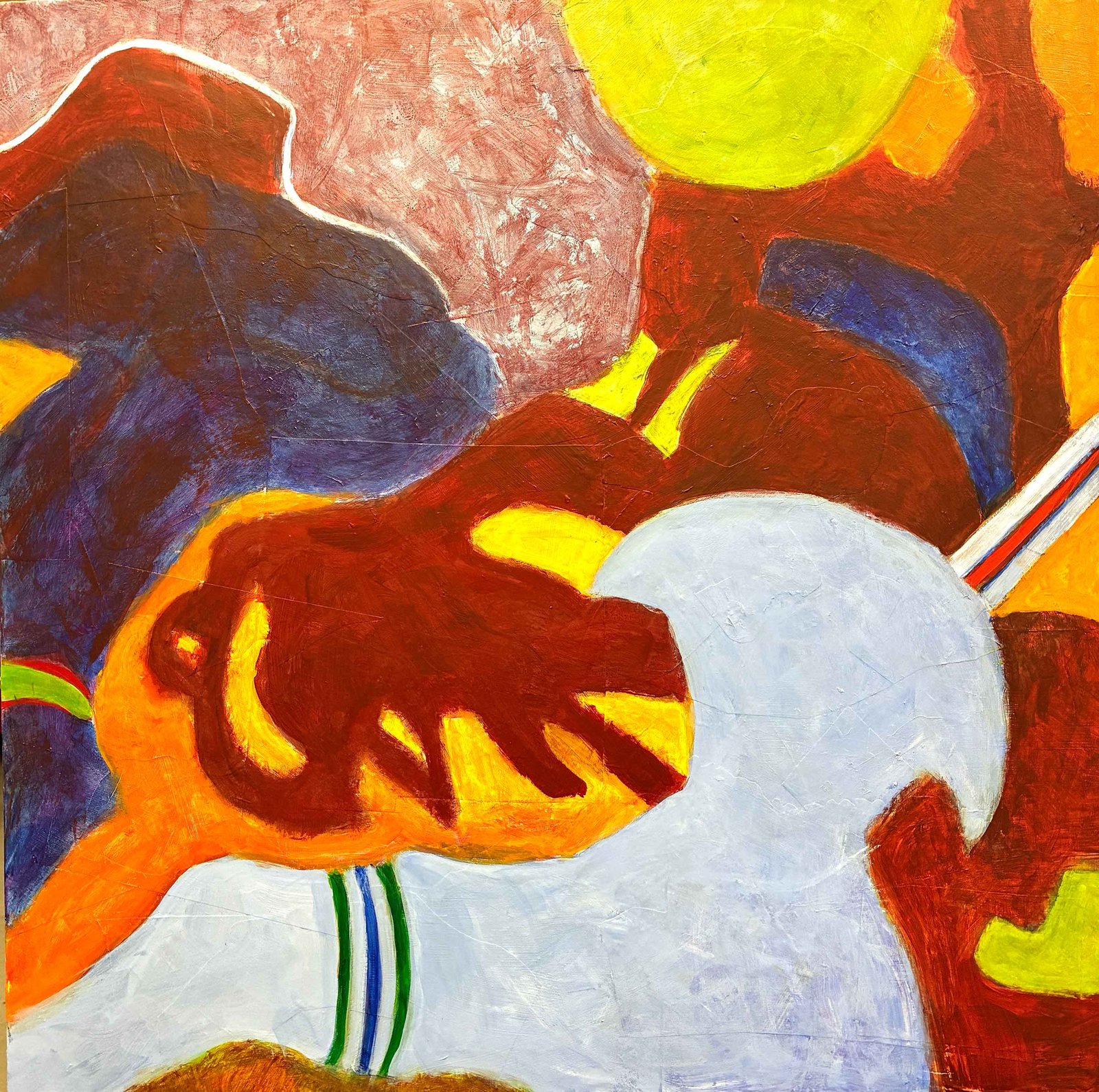 Acrylic paintings, occasionally with collage or texture.
